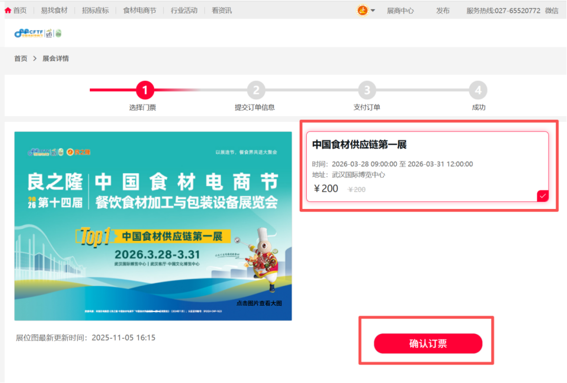 3、进入步骤一,选择门票信息,点击确认订票进入下一步