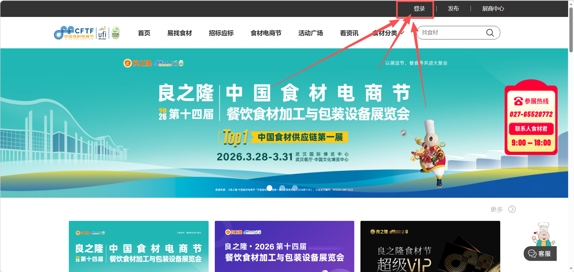1.进入“良之隆·中国食材电商节”官网首页,官网地址:https://www.chinascj.com/