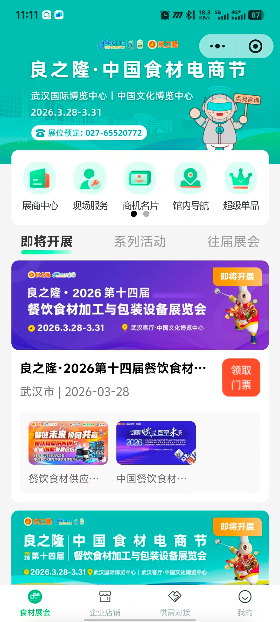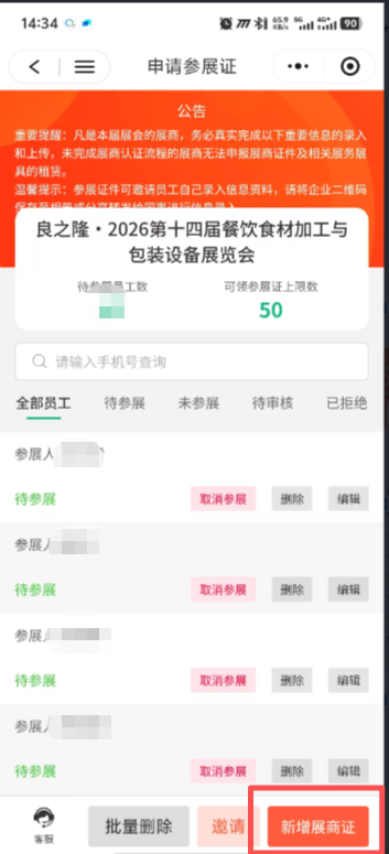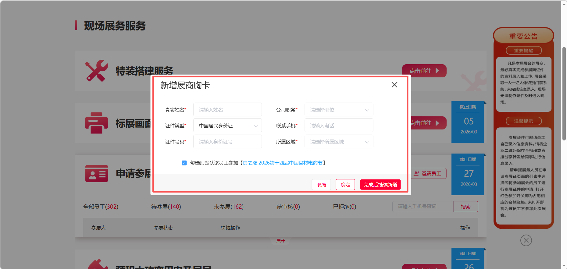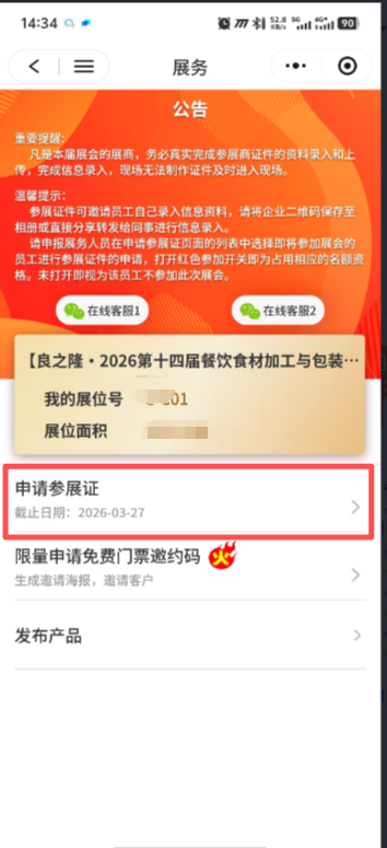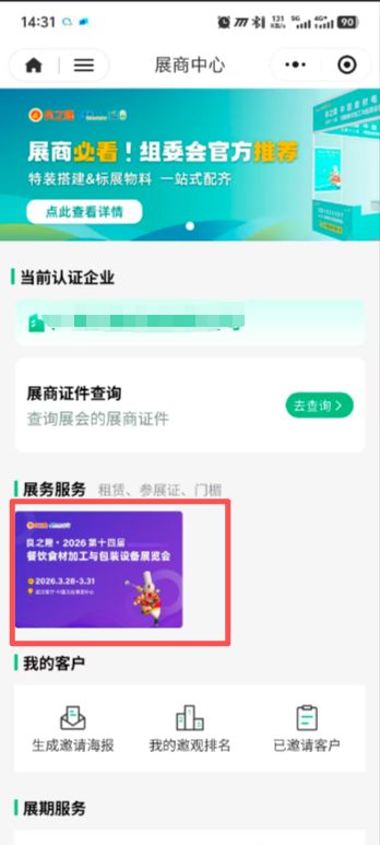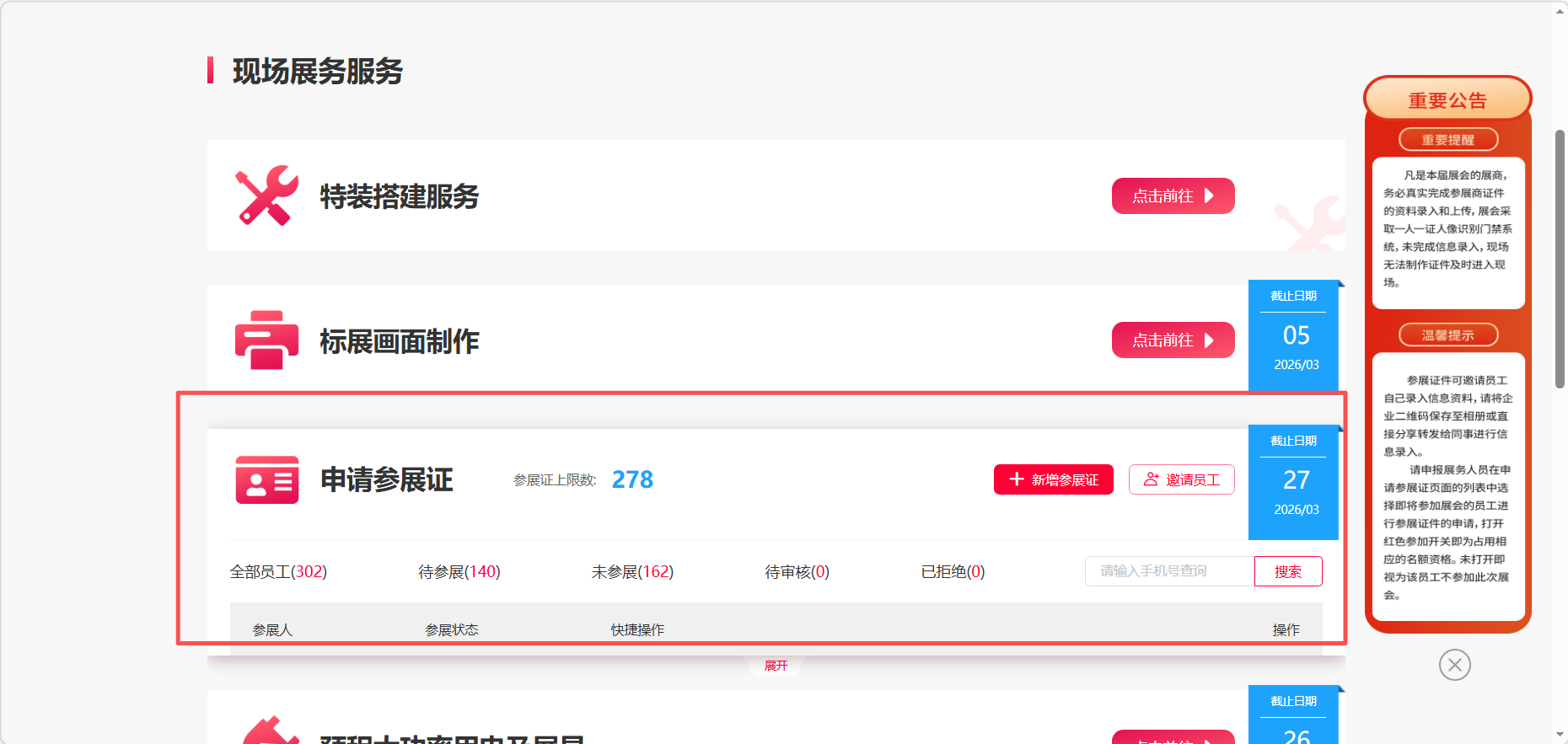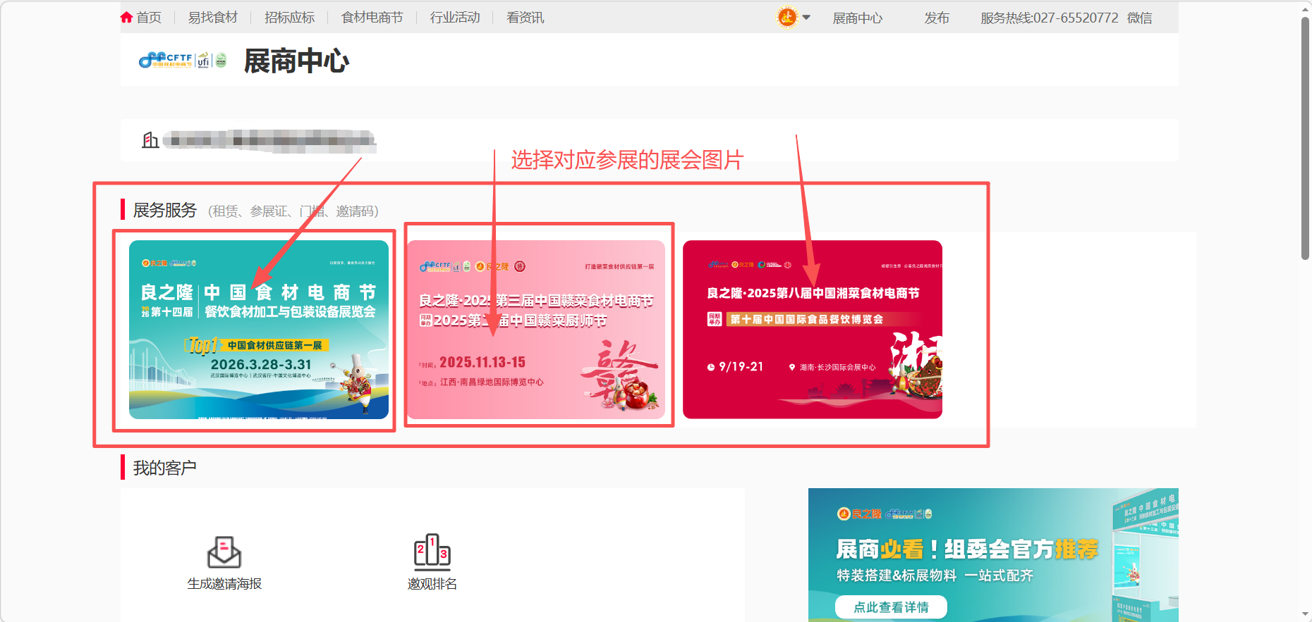 2.点击登录后进入展商中心页面,选择需要申请展商证展会